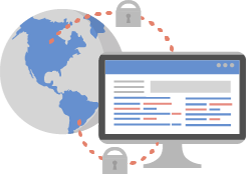 サーバへの接続は、SSL(Secure Sockets Layer)を用いた暗号化通信により情報漏えいを未然に防止します。